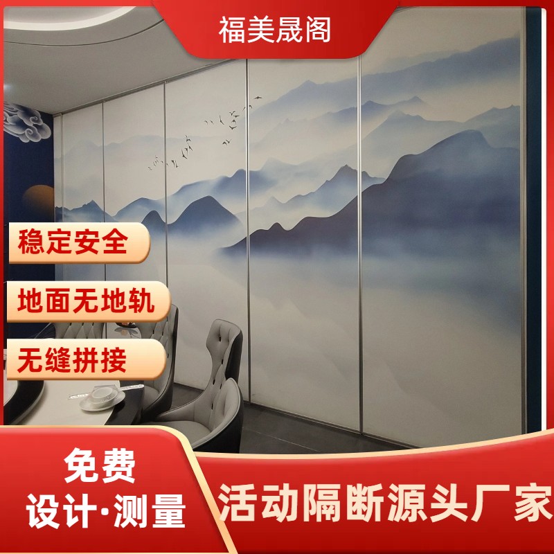 福美晟阁手动隔墙可分为单论和双轮两种做法,根据现场摆放条件不同可以设计出多种多样的风格,且表面装饰材料选择性大,可选择如:布面软包,布面硬包,防火板,亚克力板、铝板喷漆、玻璃、油画布等材料进行装饰,以配合整体设计风格,无需地轨,完全悬吊系统